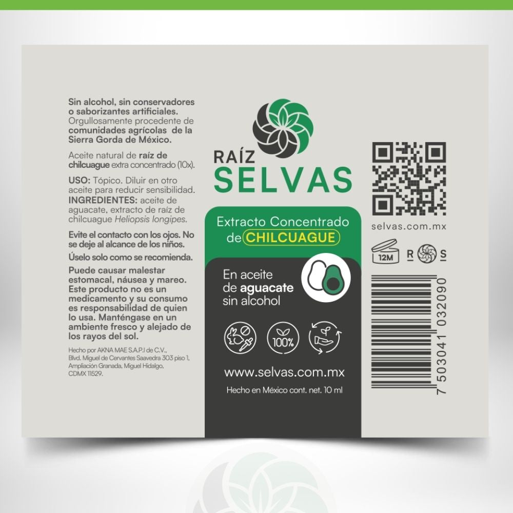 Aceite natural de raíz de chilcuague extra concentrado (10x) en aceite de aguacate.