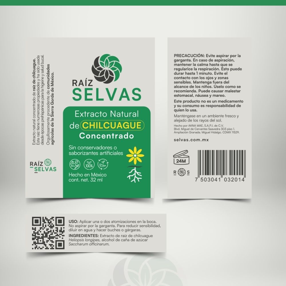 CONCENTRADO: Extracto de raíz de chilcuague Heliopsis longipes, alcohol de caña de azúcar Saccharum officinarum.