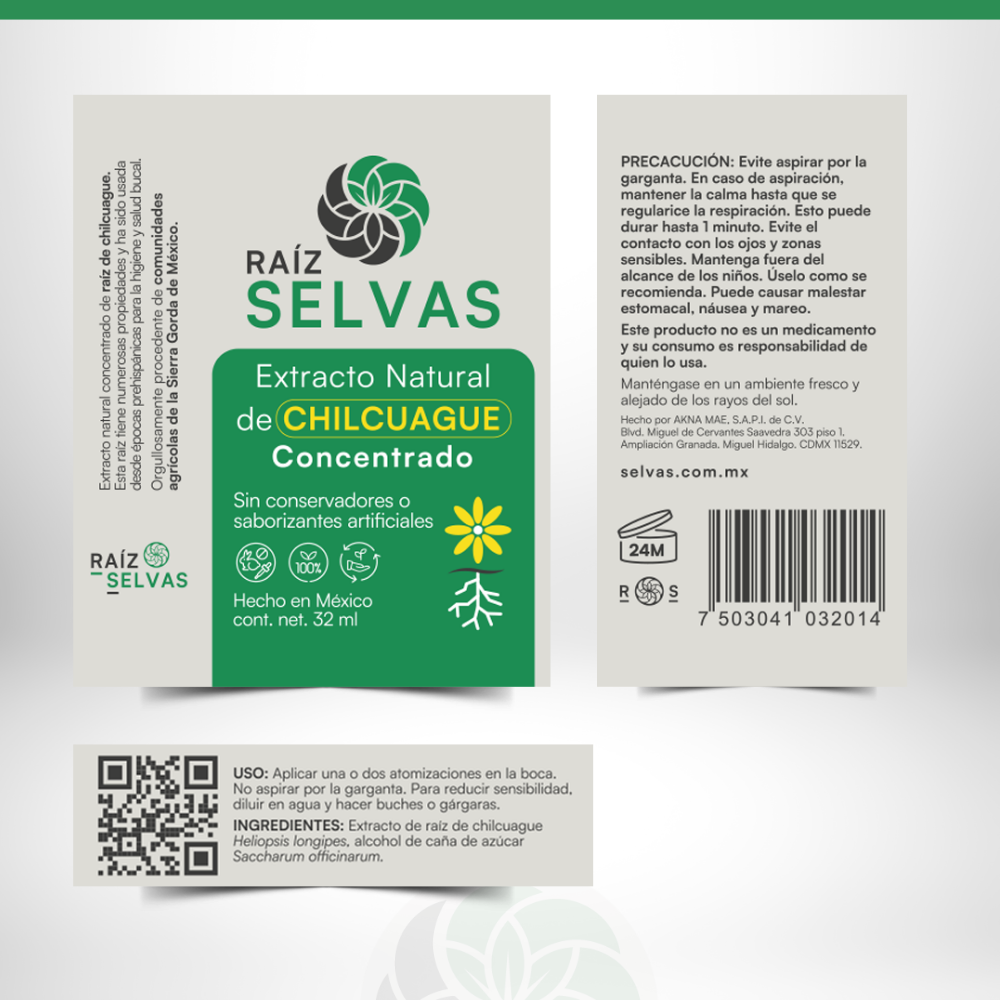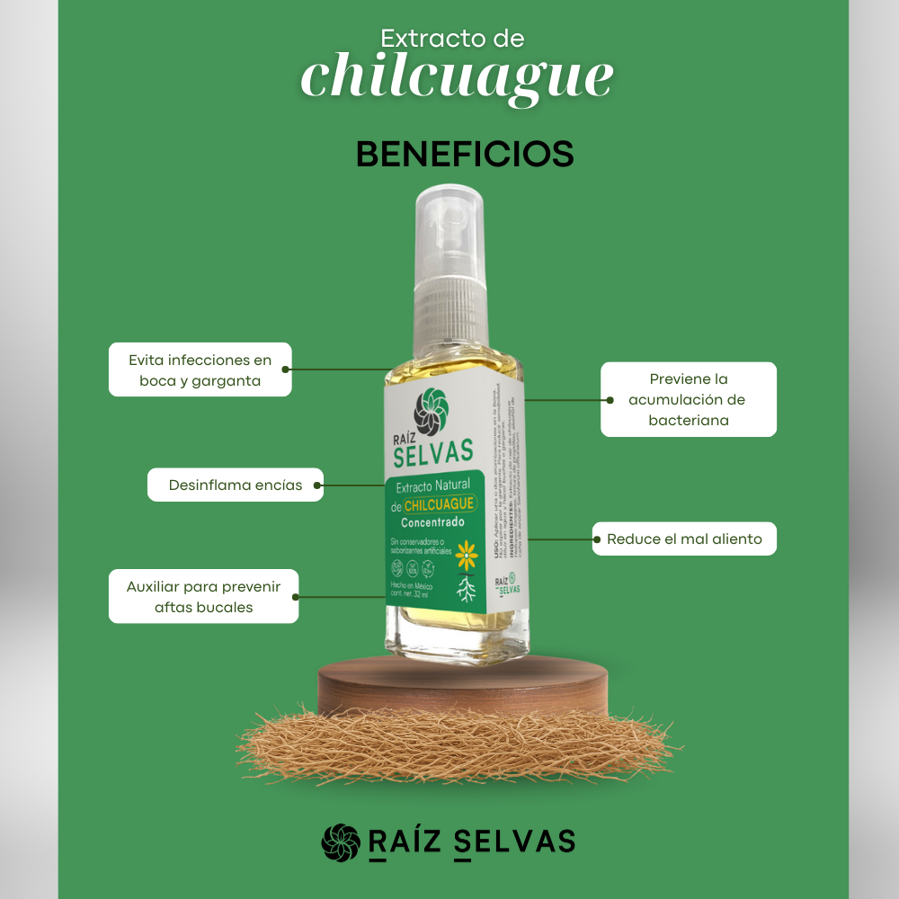 Extracto de raíz de la planta de chilcuague concentrado original, elaborado sin conservadores ni saborizantes artificiales. Producto 100% mexicano, ideal para el cuidado e higiene bucal, con un sabor único y propiedades tradicionales de la Sierra Gorda de México
