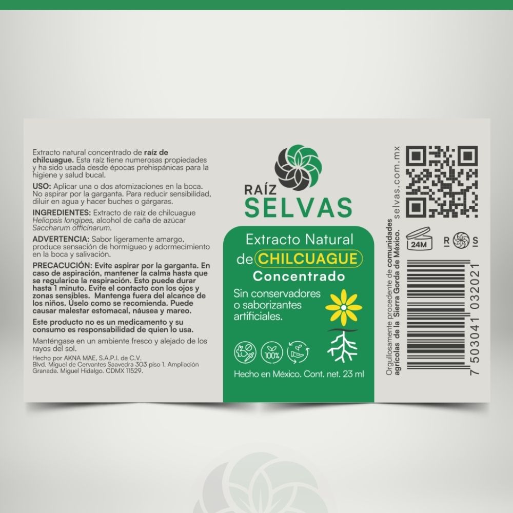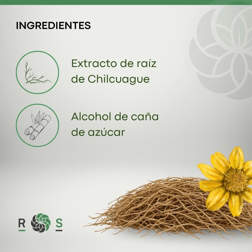 CONCENTRADO: Extracto de raíz de chilcuague Heliopsis longipes, alcohol de caña de azúcar Saccharum officinarum.