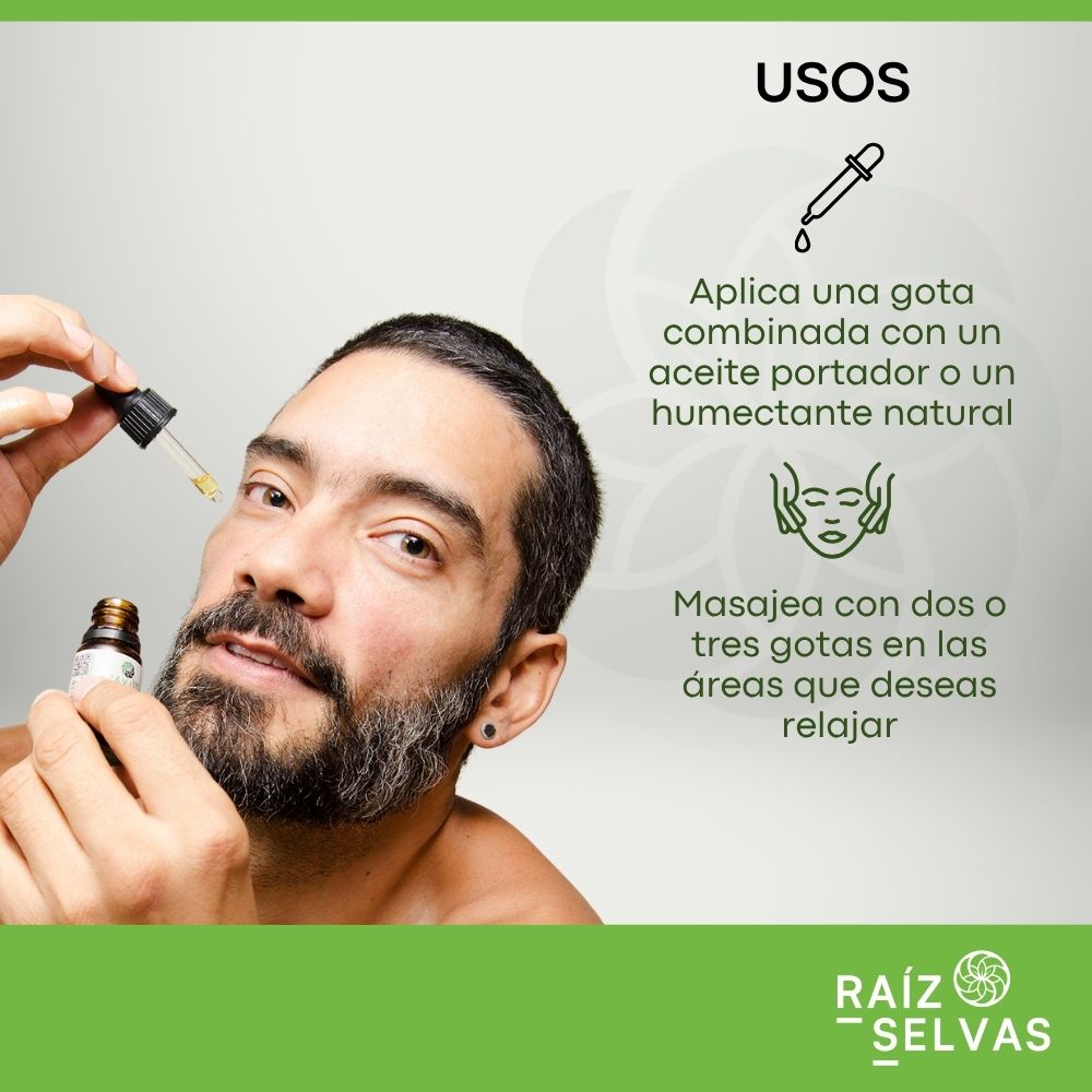 Tópico. Diluir en otro aceite para reducir sensibilidad.